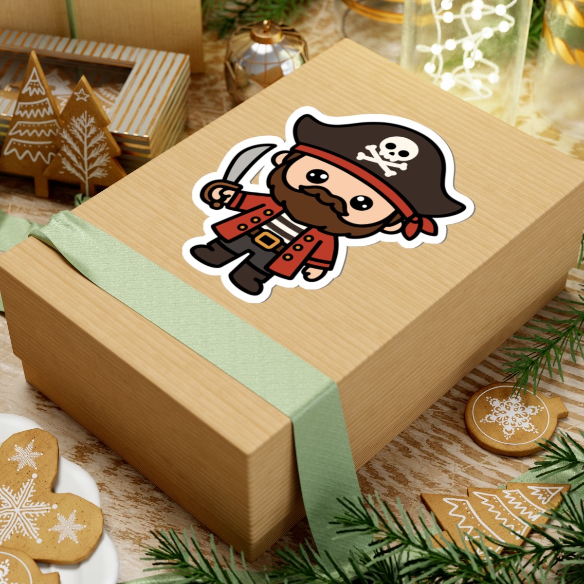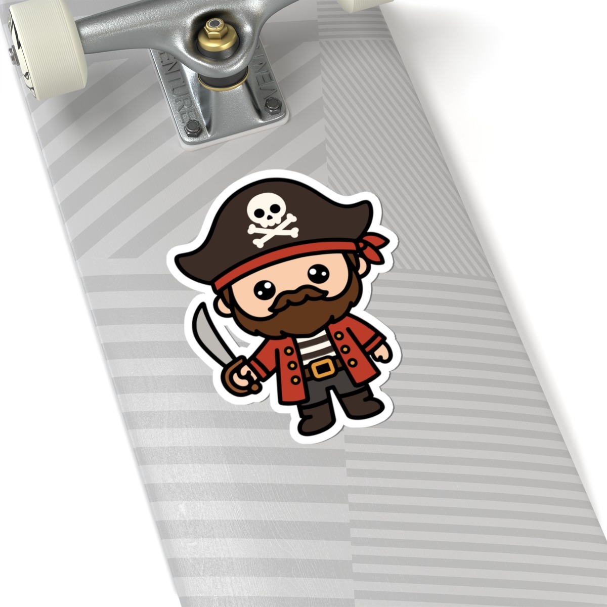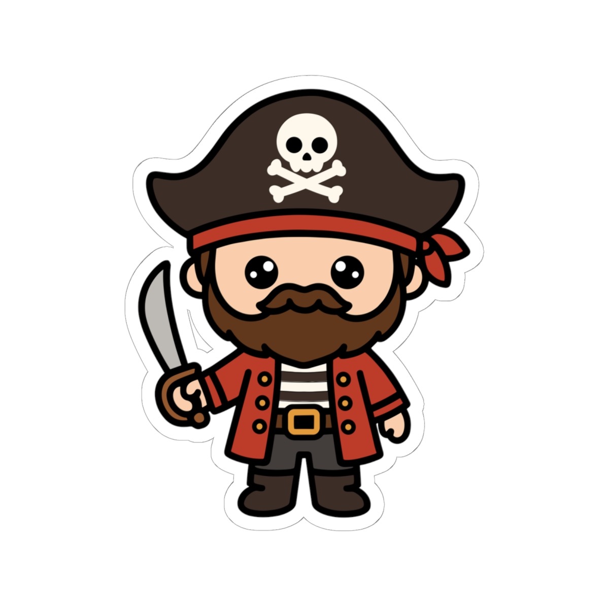Swashbuckling and sweet – Features a kawaii-style pirate in a tricorn hat, striped shirt, and boots, complete with a tiny cutlass and cheeky grin.