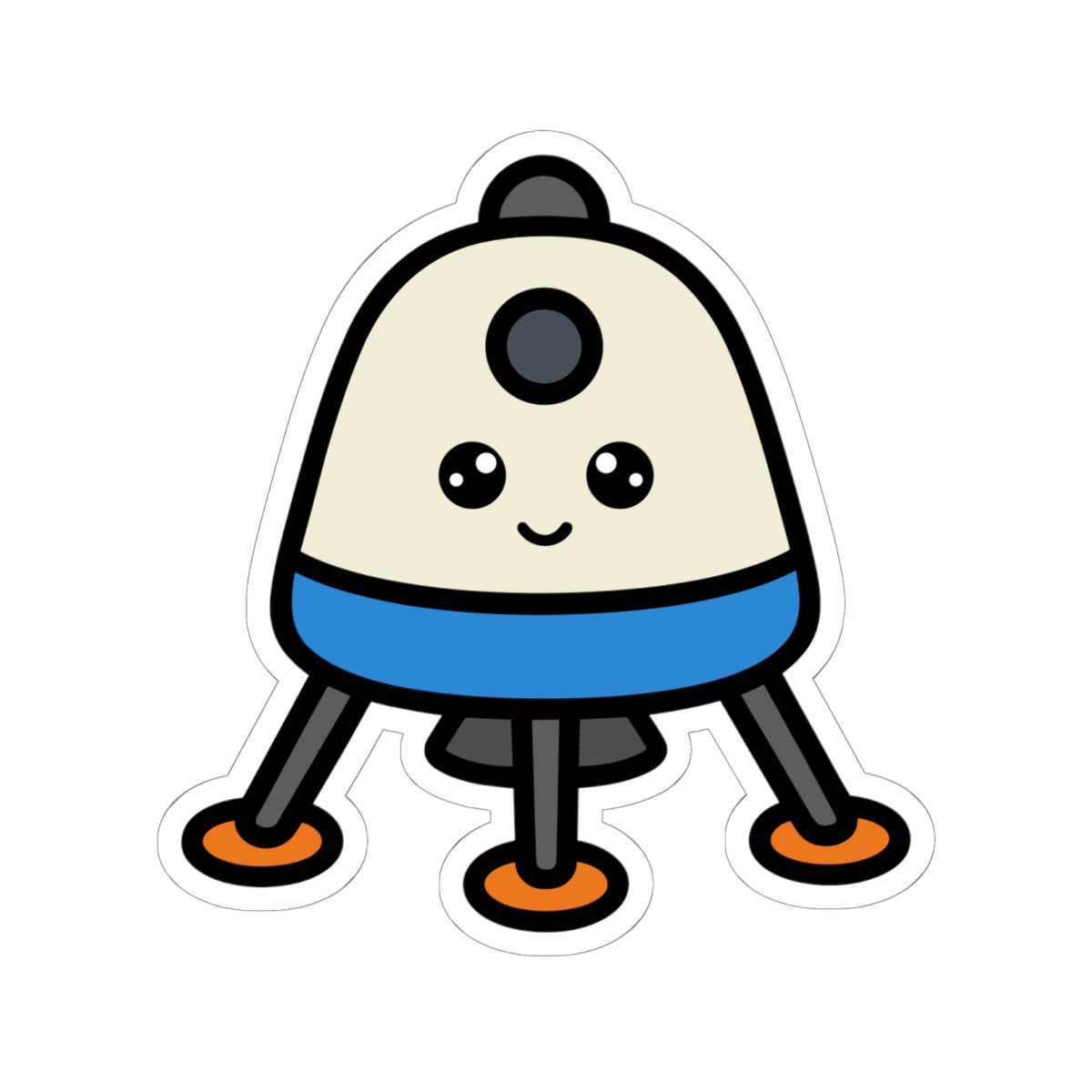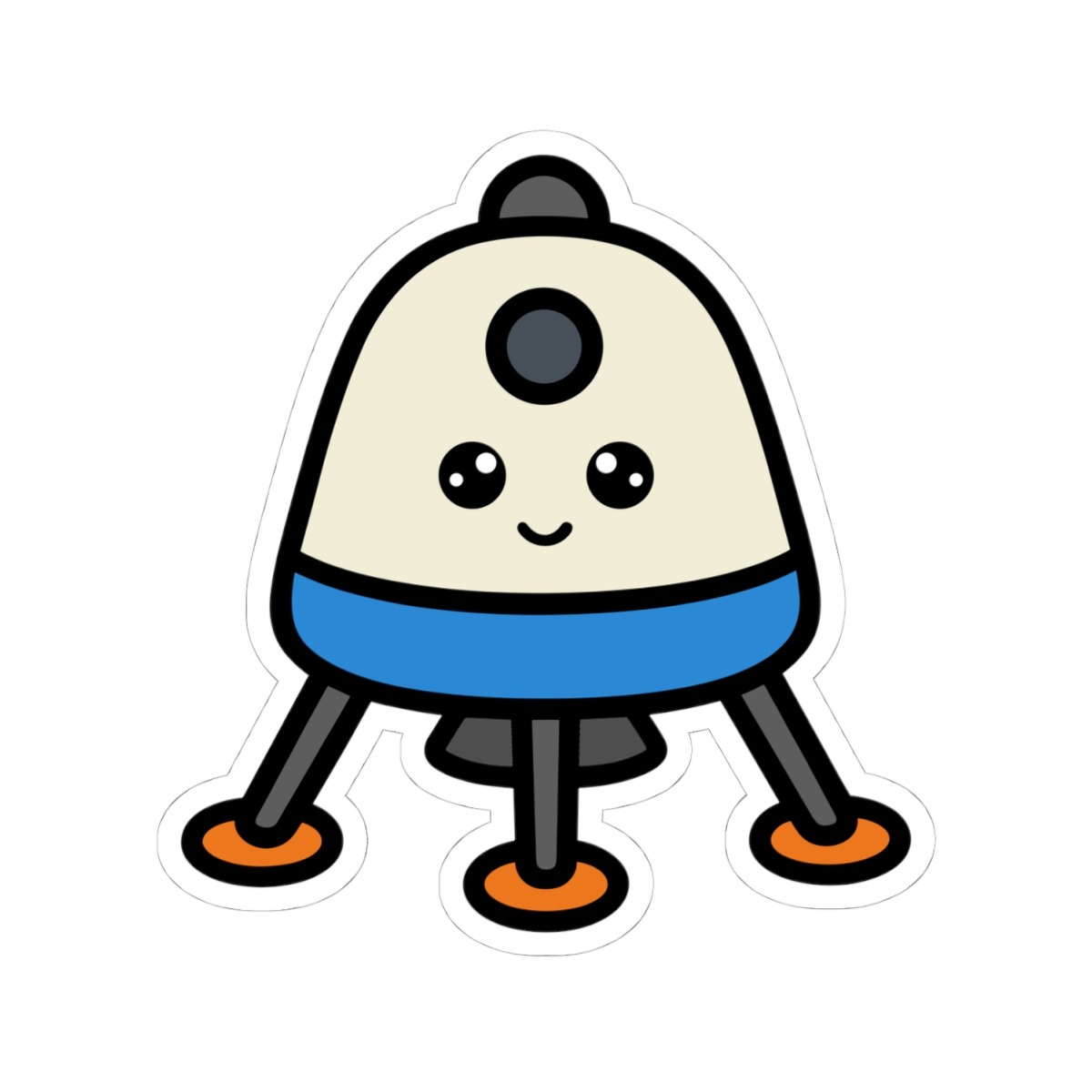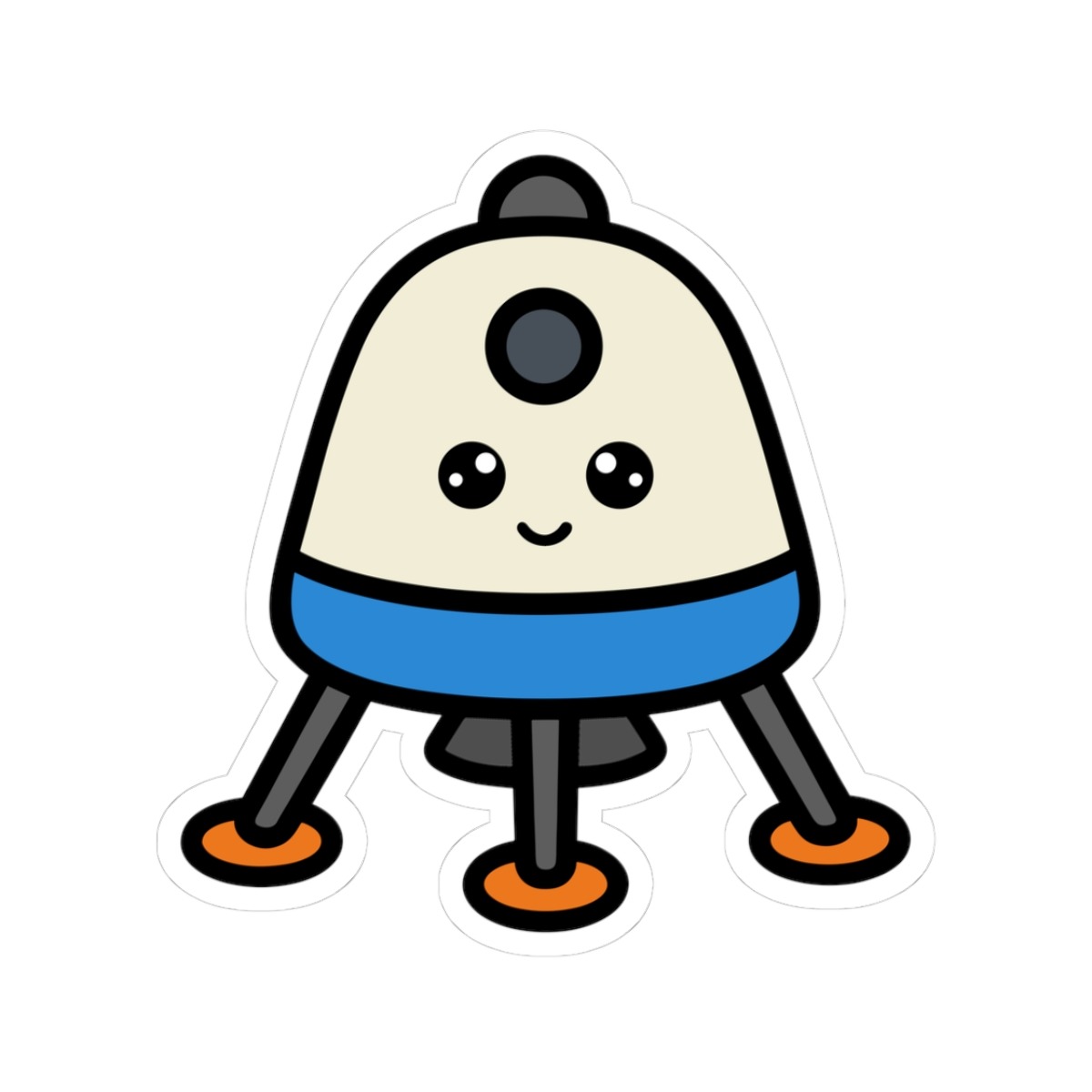 Design appeal: Features a kawaii-style planetary lander with sturdy metallic legs, big sparkling eyes, and a confident grin, radiating pure space mission cuteness and high-tech adventure.
