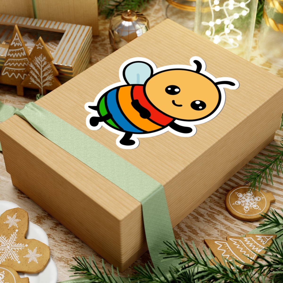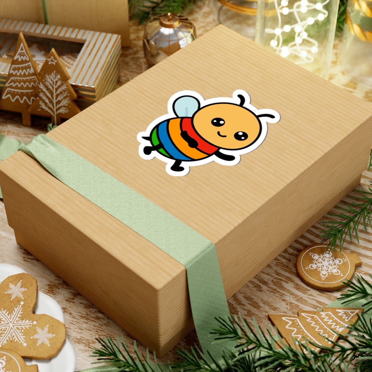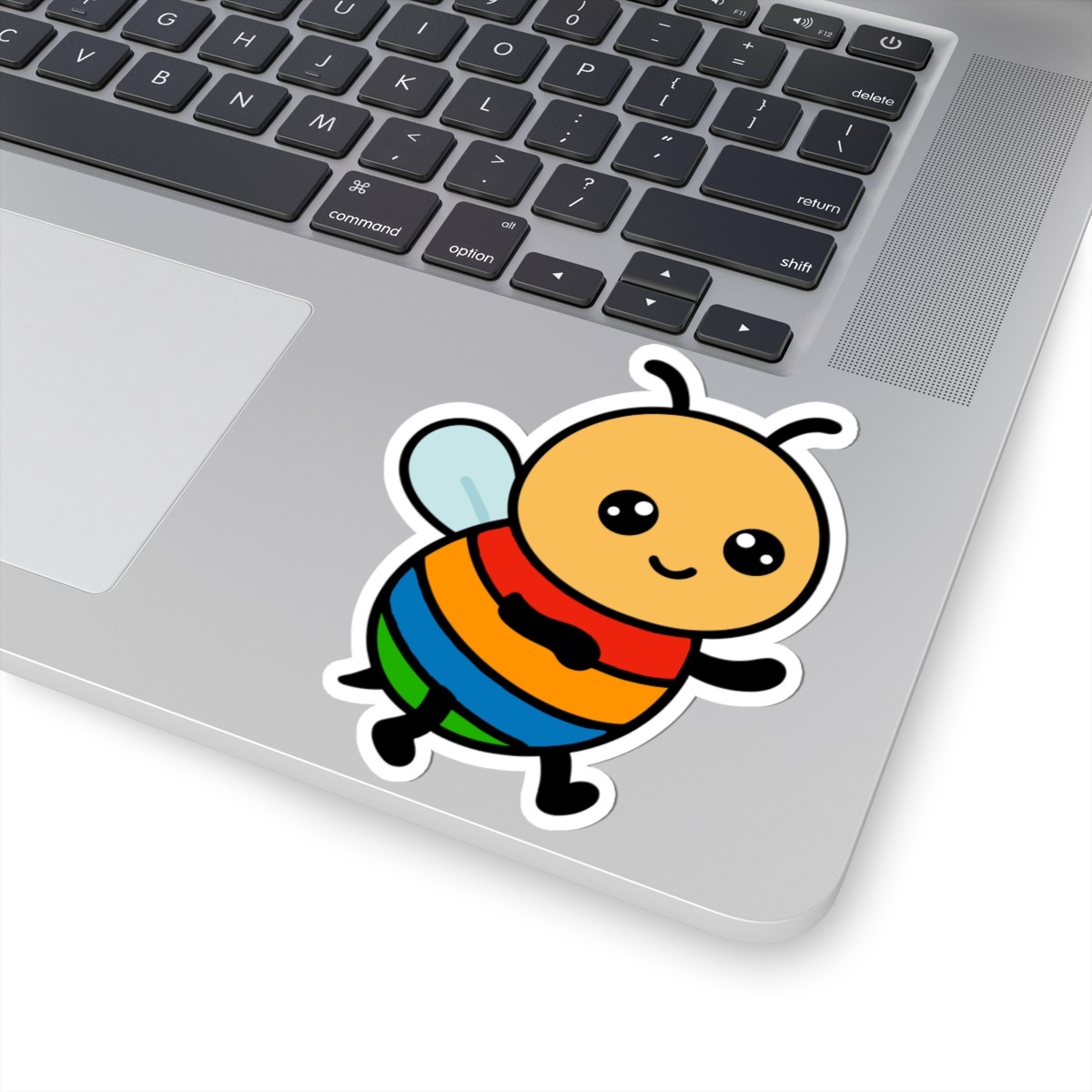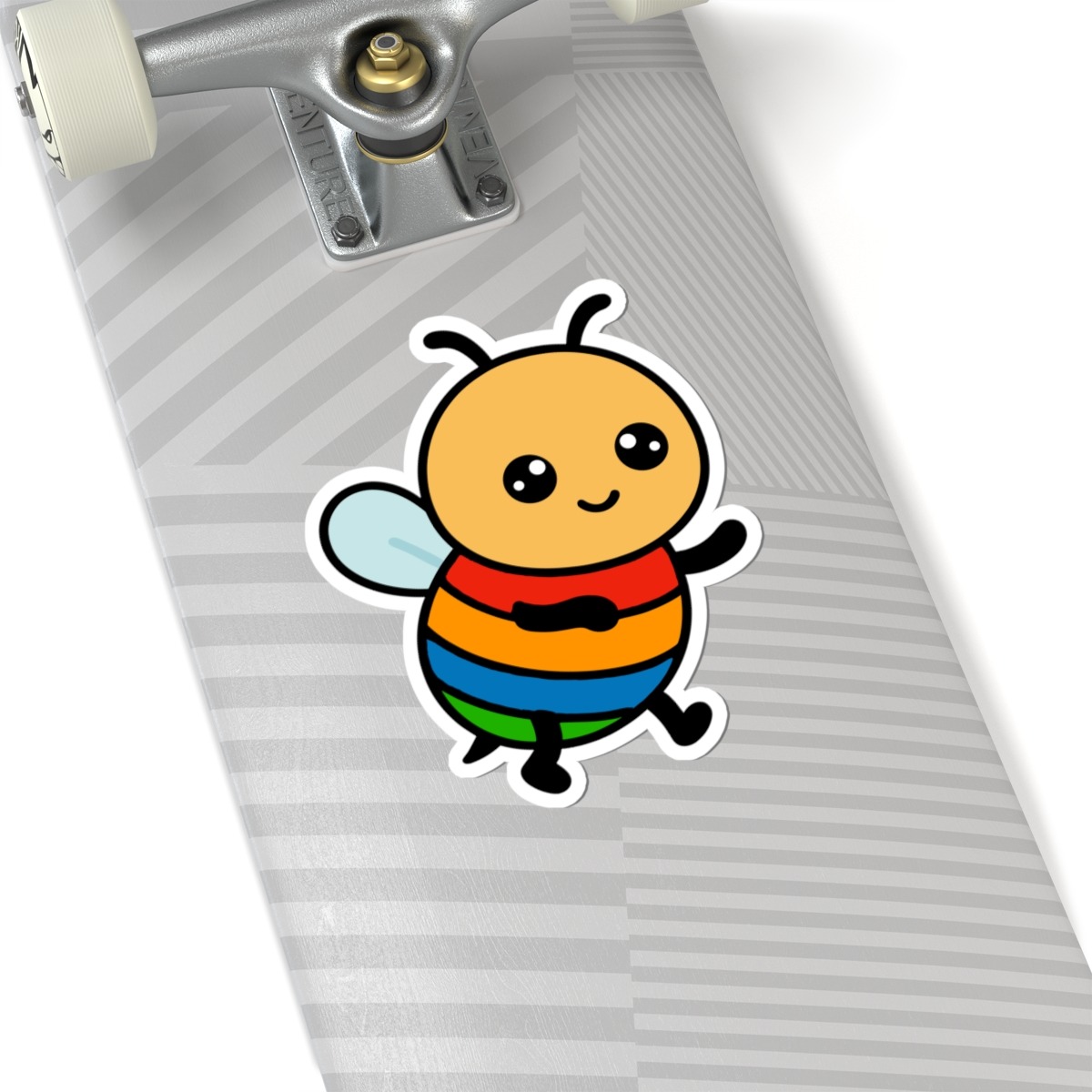 Design appeal: Features an adorable kawaii-style bumble bee with a fluffy striped body in brilliant rainbow colors, wings, and big smiling eyes — it’s pure sunshine and joy in sticker form!