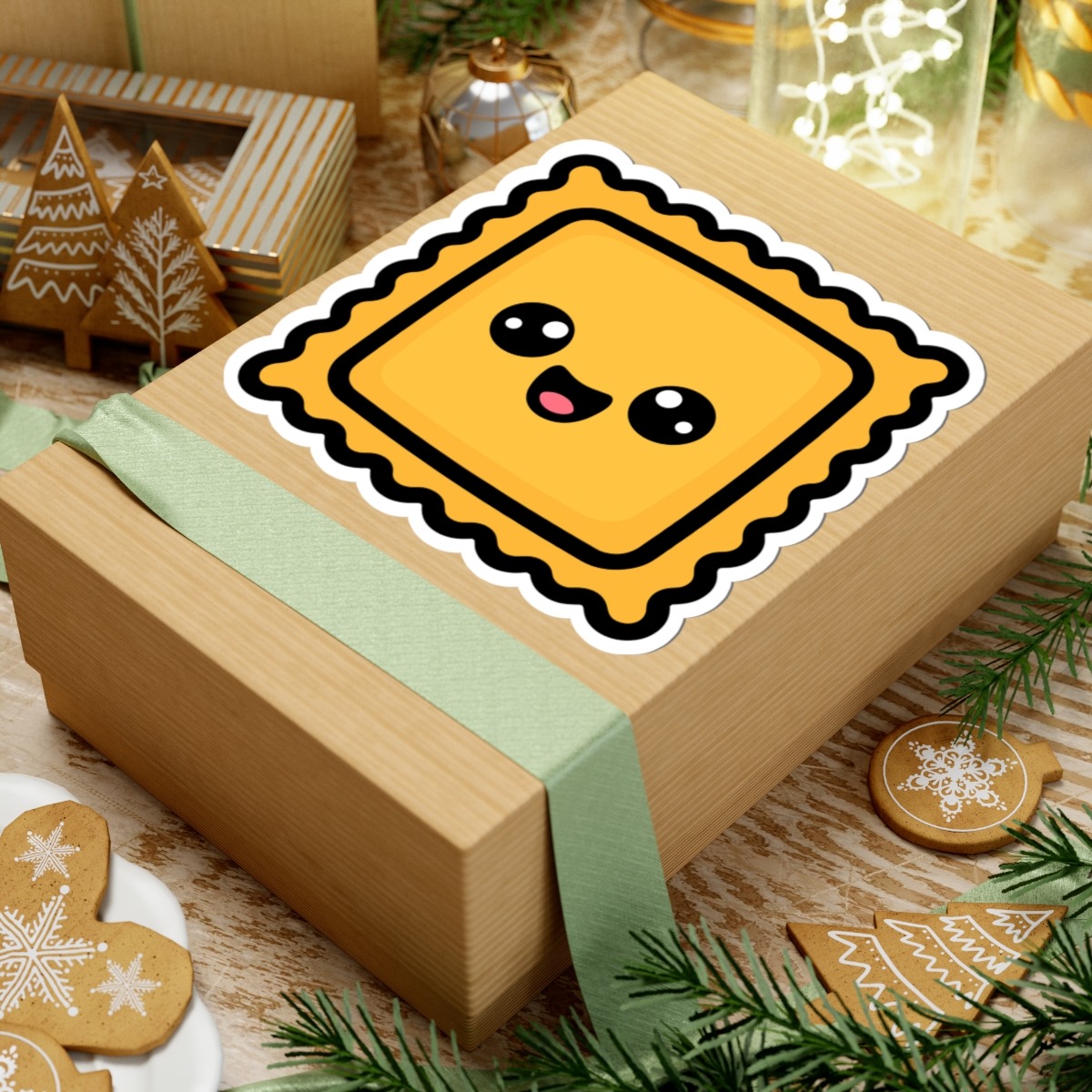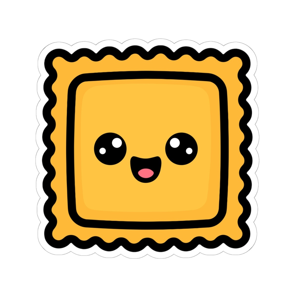 Pillow-soft and precious – Features a kawaii-style ravioli with scalloped edges, a warm golden color, and a happy little smile that’s pure carb comfort.