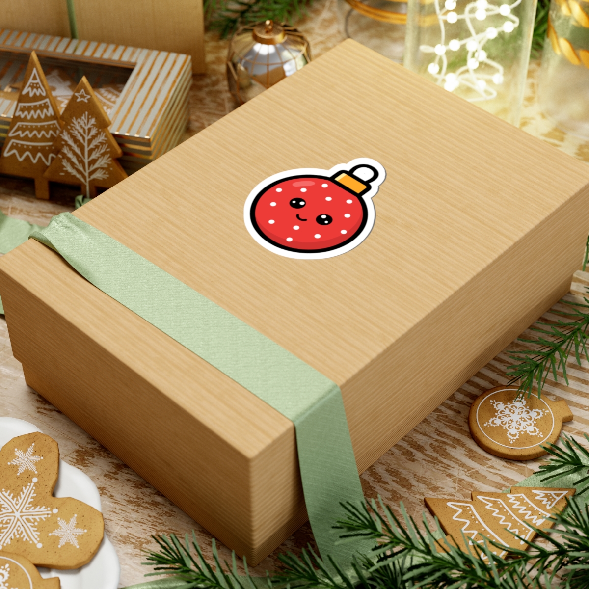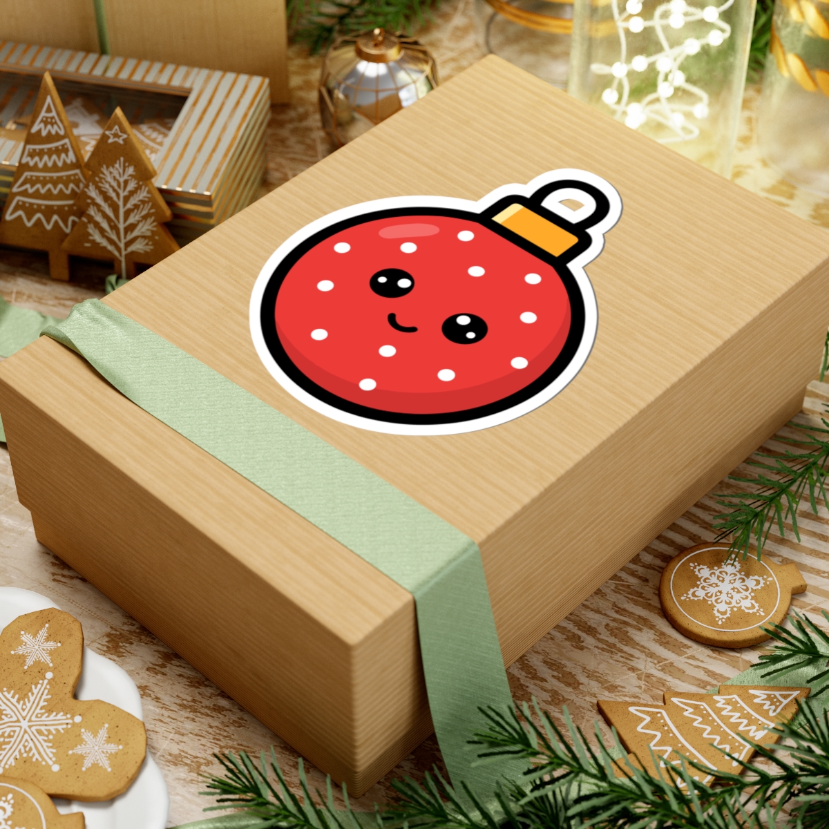 Design appeal: Featuring a red round ornament with a cute, happy face, this sticker adds a fun and cheerful touch to your holiday decorations.