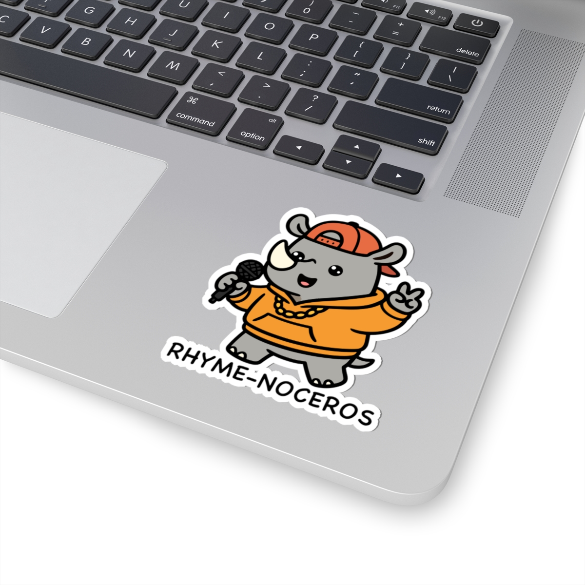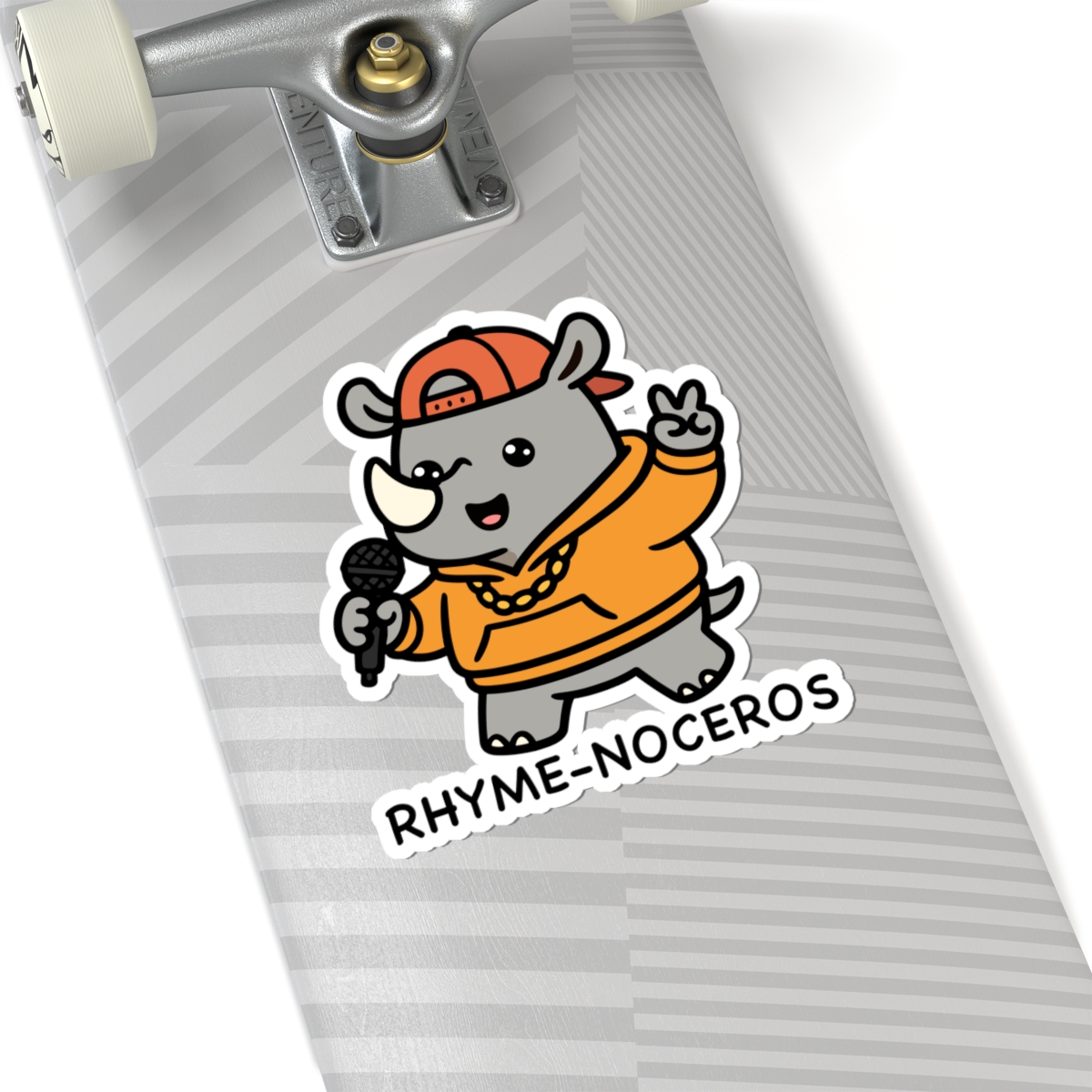 Bold and boomin’ – Features a kawaii-style rhino dressed in hip-hop gear, gold chain, flat-brim hat, and holding a mic with serious “don’t mess with my metaphors” energy.