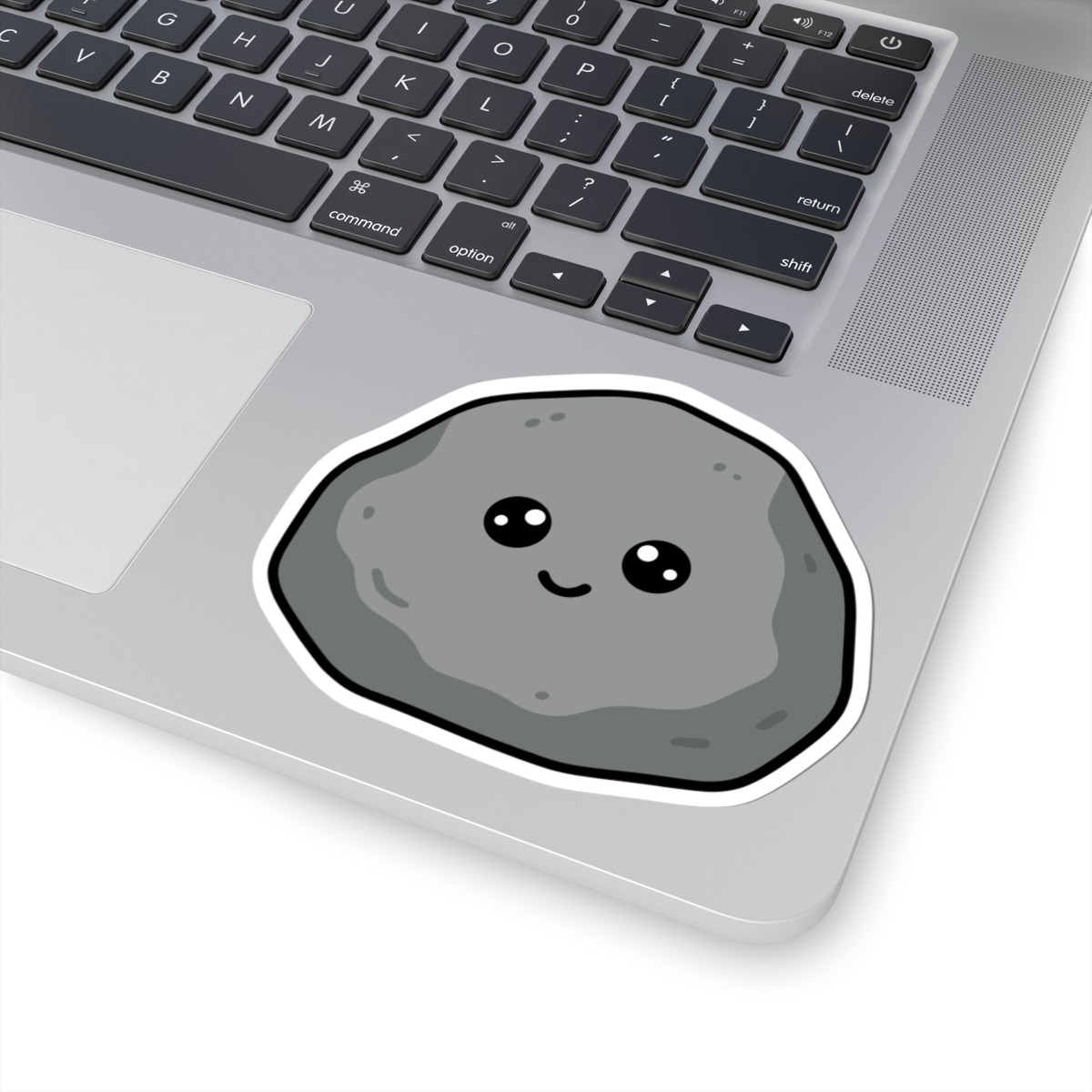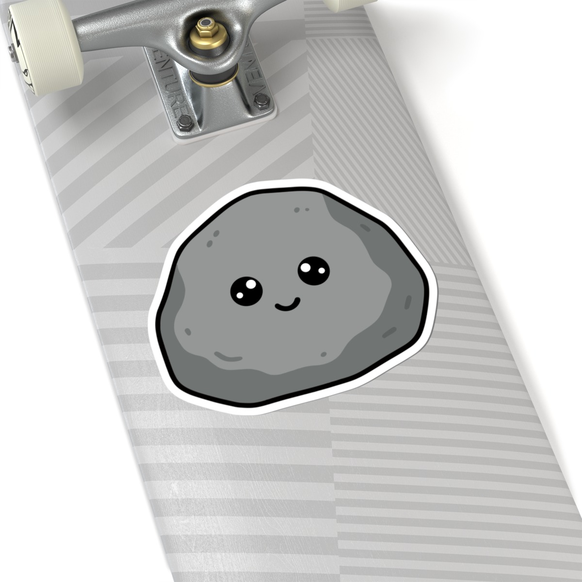 Design appeal: Features a kawaii-style rock in soft grey tones, with smooth curves, tiny textured details, big sparkling eyes, and a cheerful grin, radiating pure earthy cuteness and natural personality.