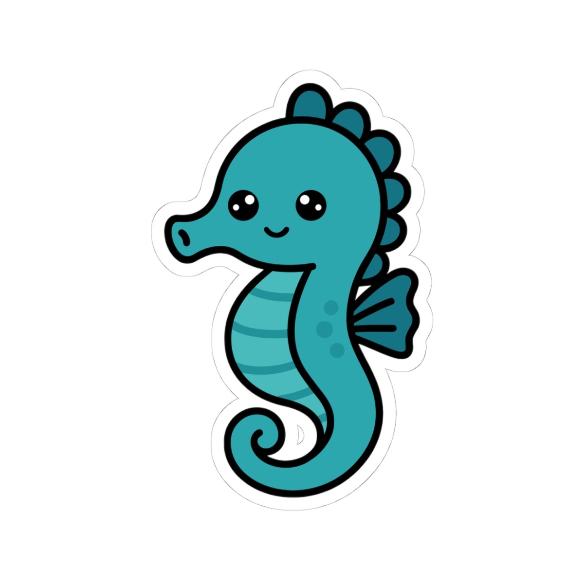 Design appeal: Features a kawaii-style seahorse with a curvy, curled tail, delicate fins, and textured ridges in soft shades of blue, big sparkling eyes, and a sweet, gentle grin, radiating pure marine cuteness and elegance.