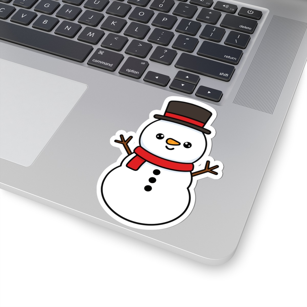 Design appeal: Featuring a charming snowman wearing a classic top hat, scarf, and carrot nose, this sticker captures all the winter charm in a cute, kawaii-style design.