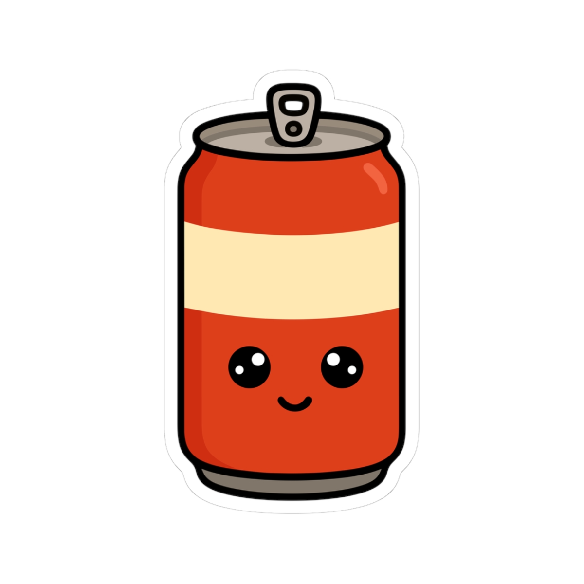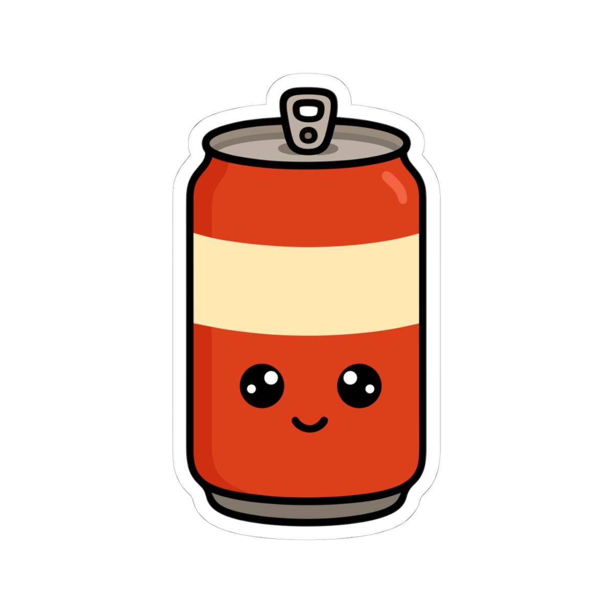 Sweet and sparkly – Features a kawaii-style soda can with a shiny metallic look, bright smiling face, pull-tab top, and little accents for extra pop.