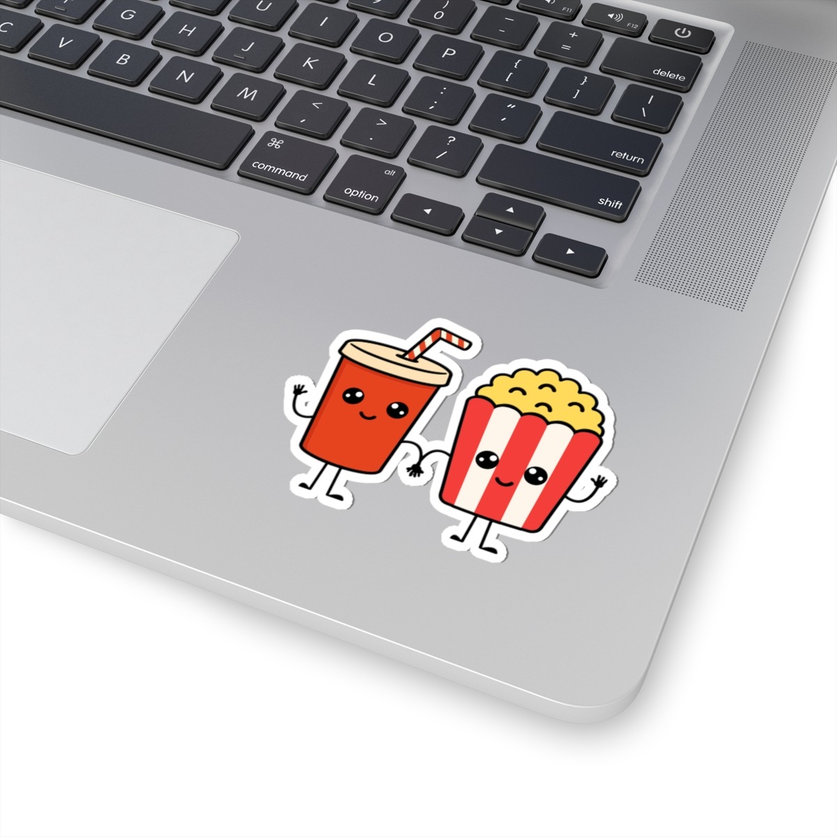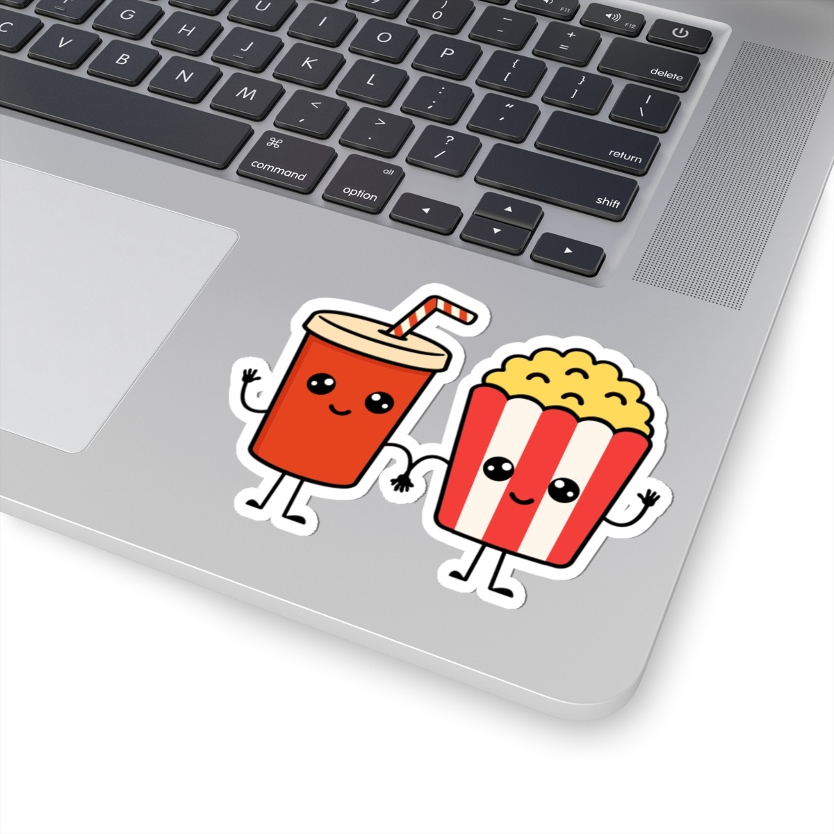 Charming & Nostalgic Design: The friendly duo of soda and popcorn brings back fun movie moments—great for film lovers or anyone who enjoys retro snack vibes.