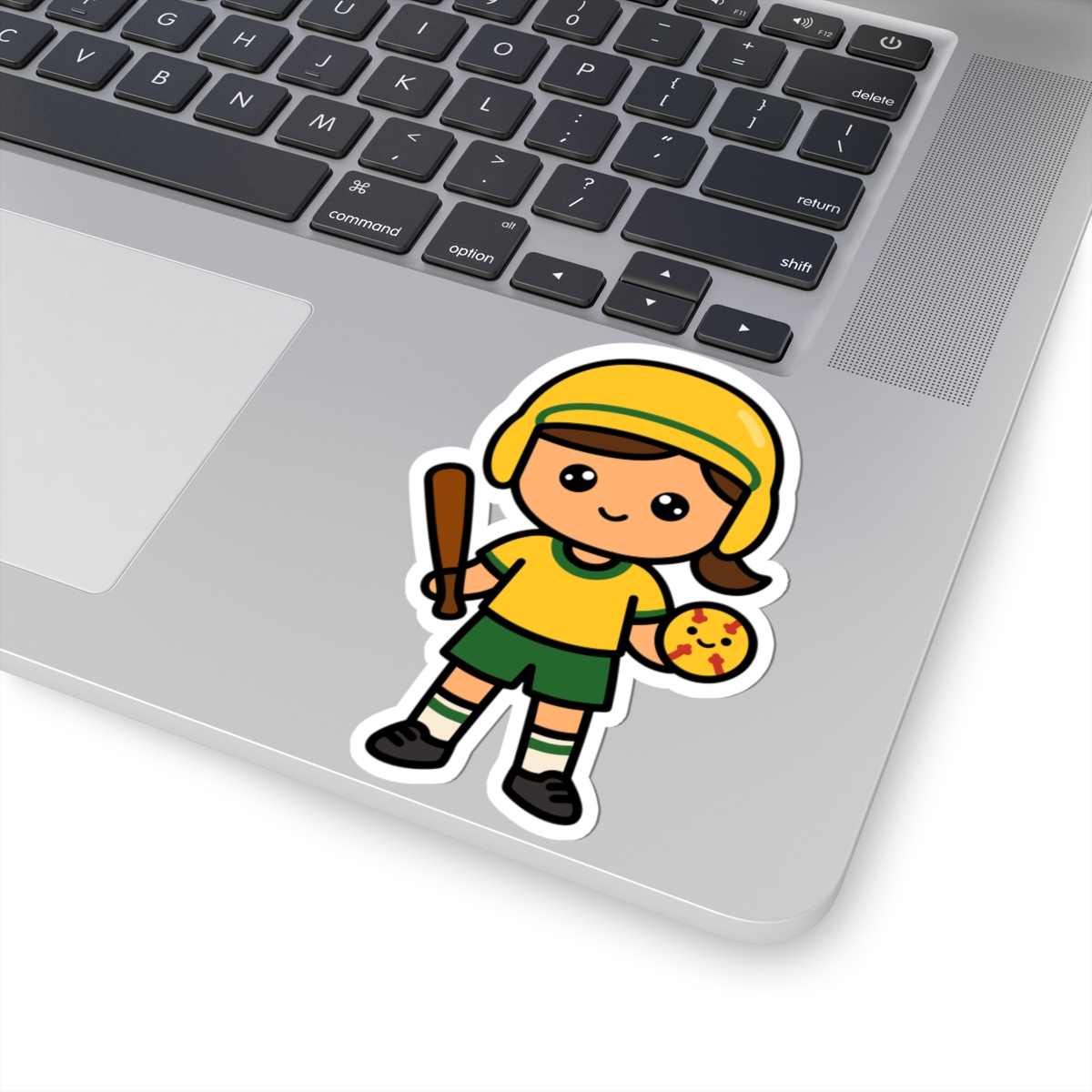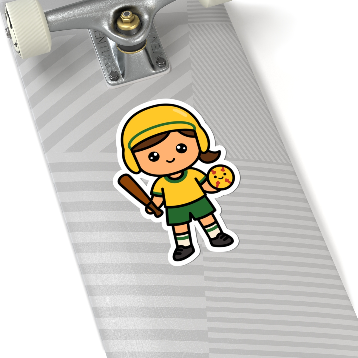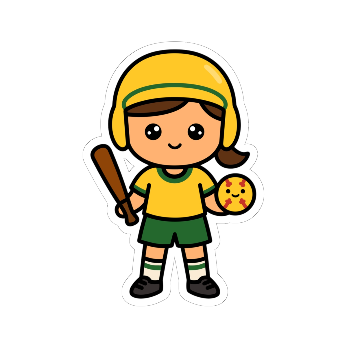 - Sporty and sweet – Features a kawaii-style softball player girl in a bright uniform, cap, and cleats, with a big grin.