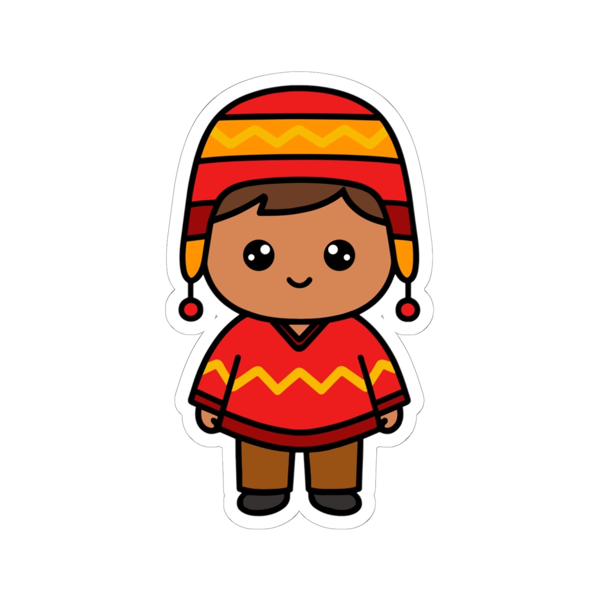 Radiating joy and cultural color, this South American boy in traditional attire brings vibrant energy and folkloric flair to your sticker collection—perfect for everyday brightness or festive sparkle!