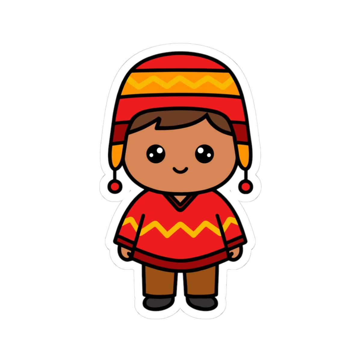 Bright and joyful design – Features a kawaii-style South American boy wearing a decorated poncho and hat—full of cheerful spirit and folkloric charm.