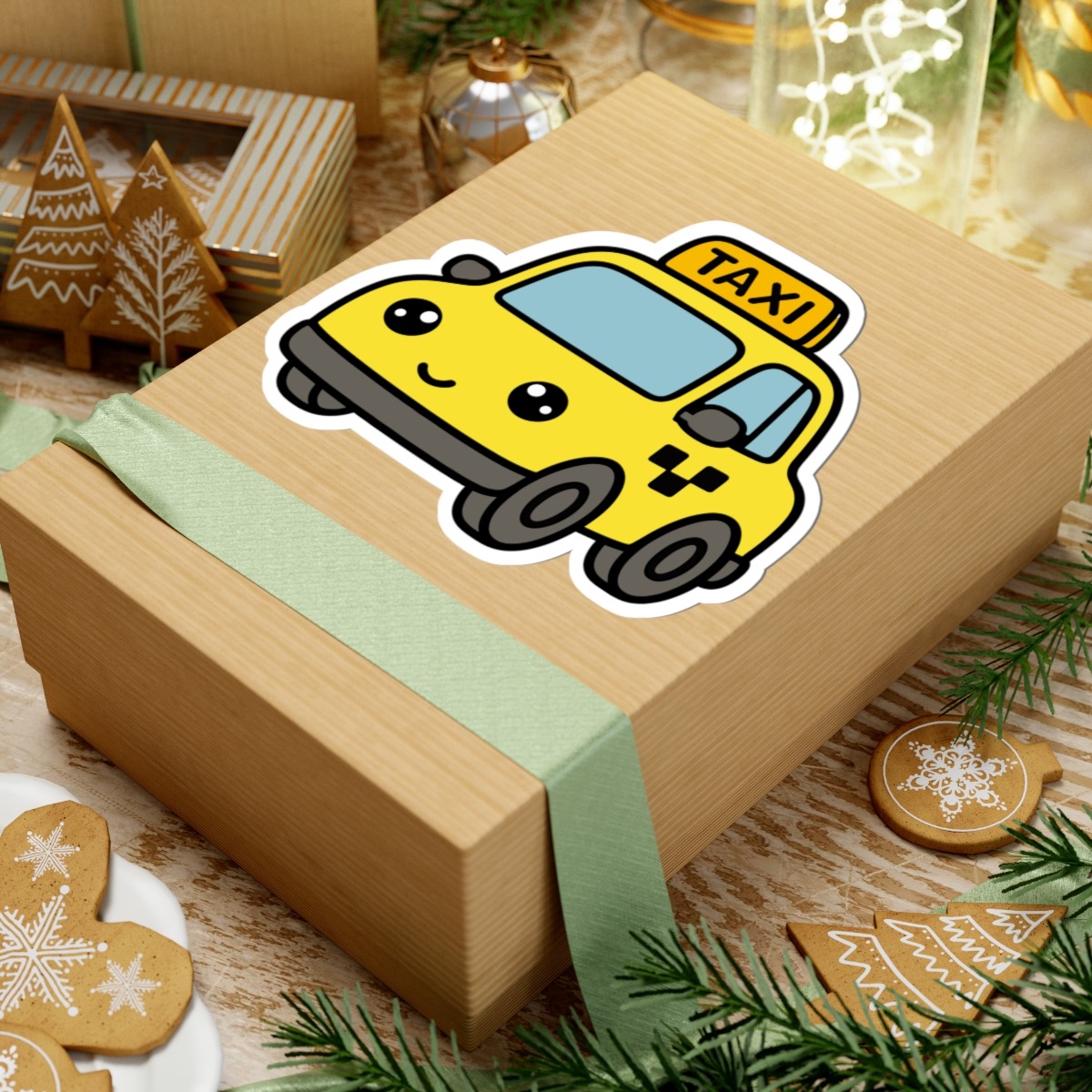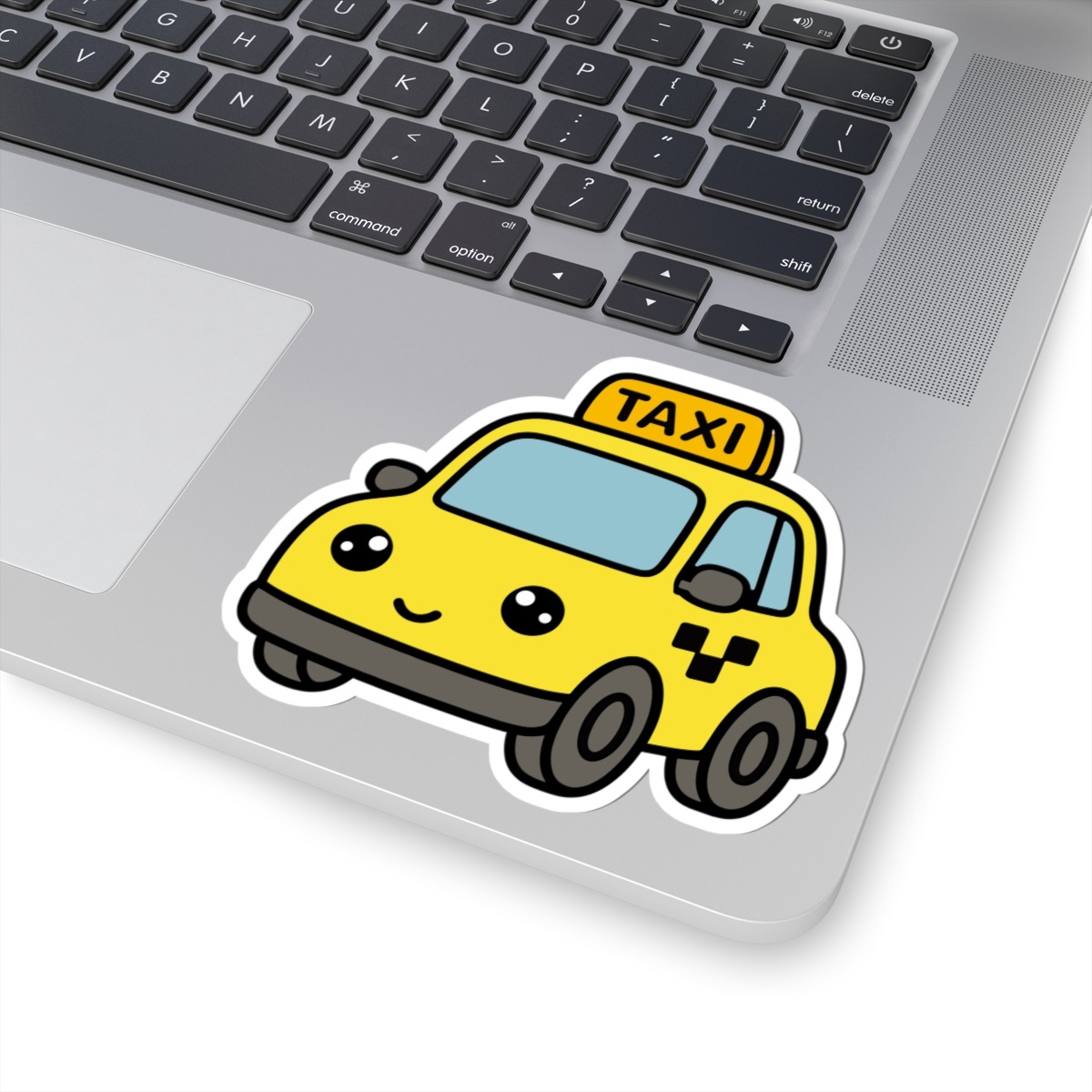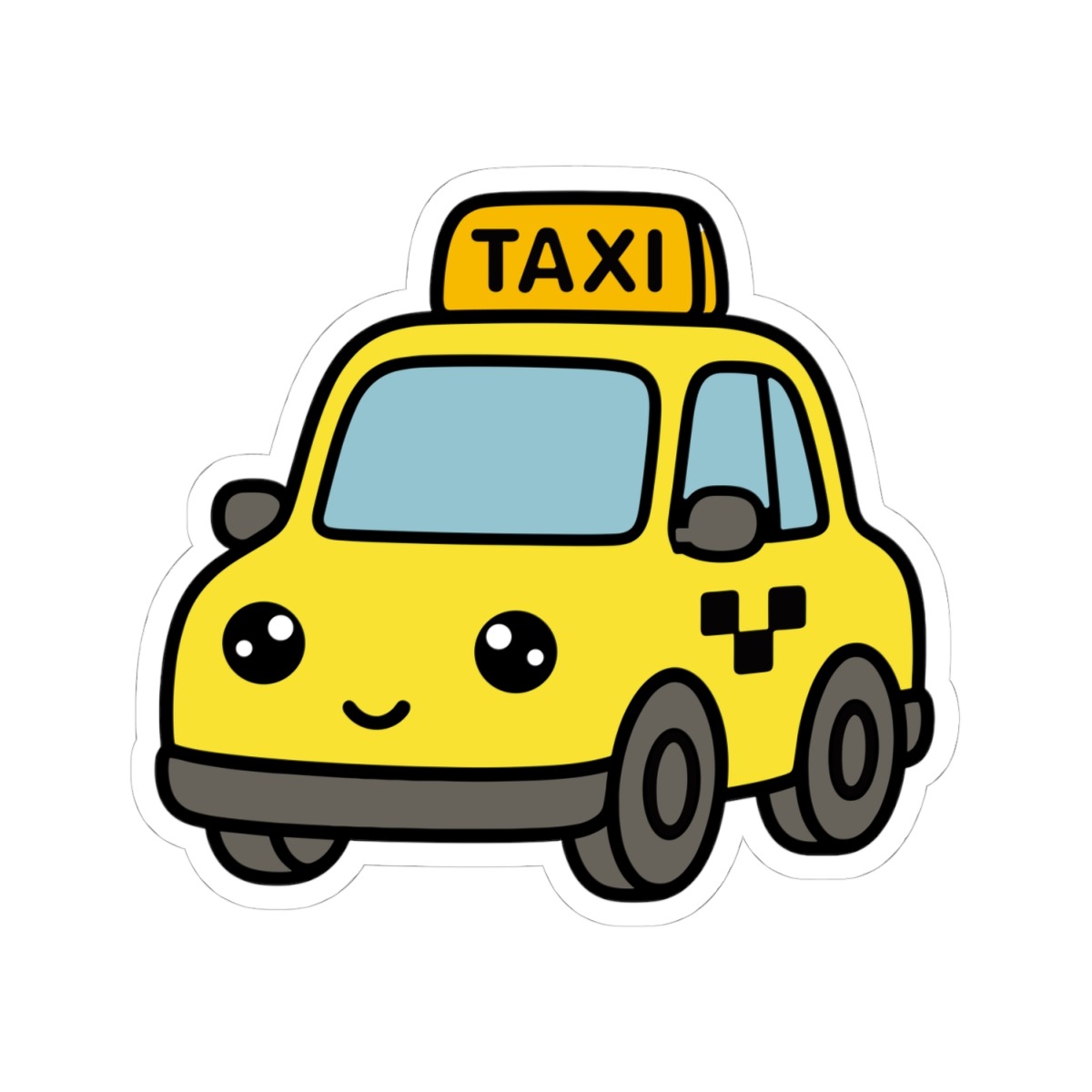 Classic and cute – Features a kawaii-style yellow taxi cab with big round headlights, a happy smile, and a tiny roof sign that says “TAXI” loud and proud.