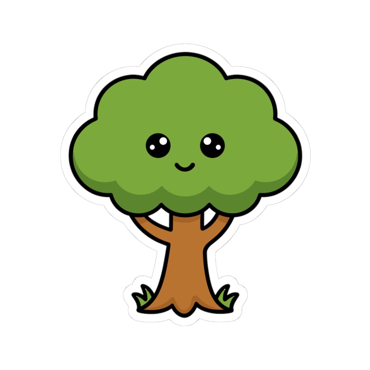 Design appeal: Features a kawaii-style tree with a lush, round green canopy, a sturdy brown trunk, big sparkling eyes, and a gentle smile, radiating pure woodland joy and natural beauty.