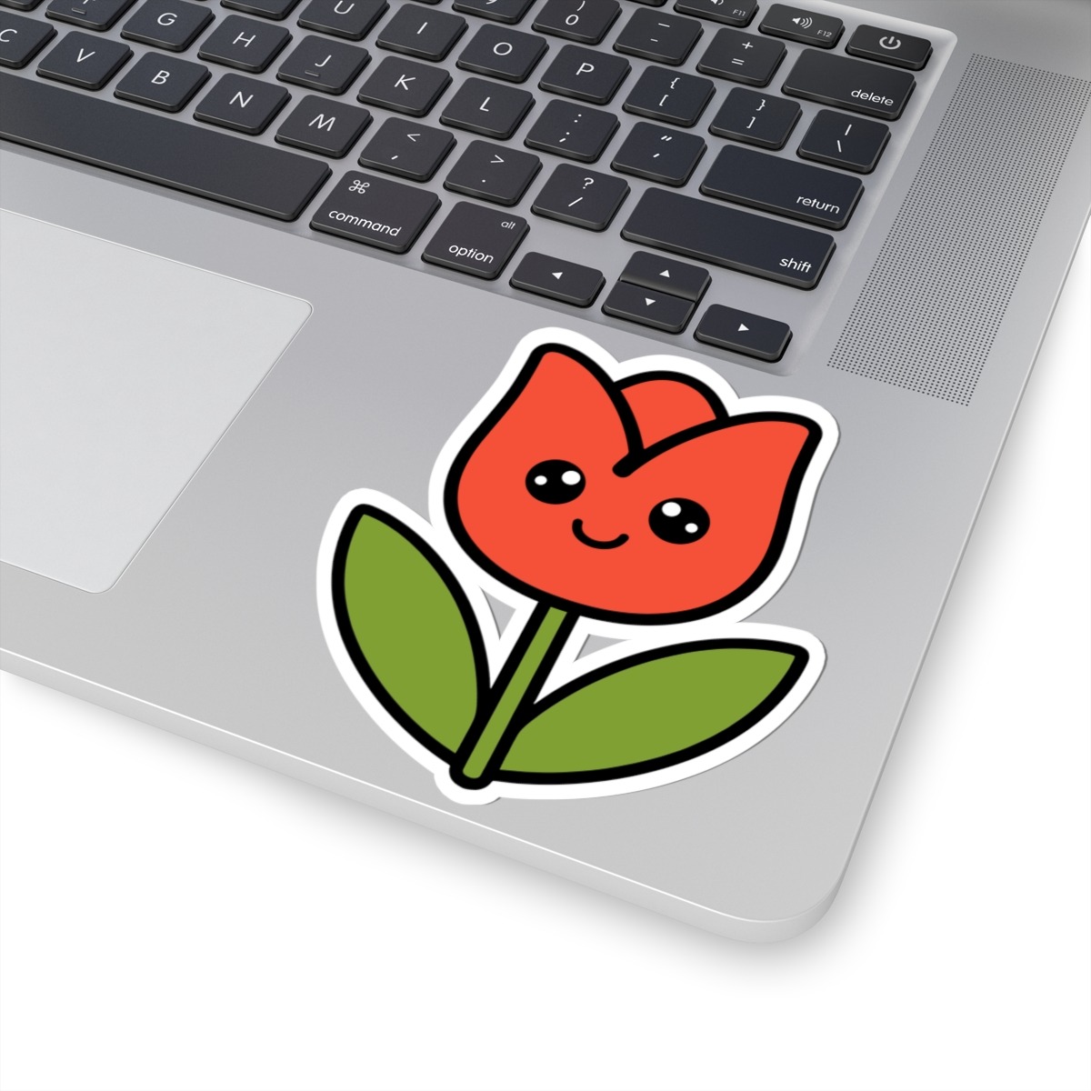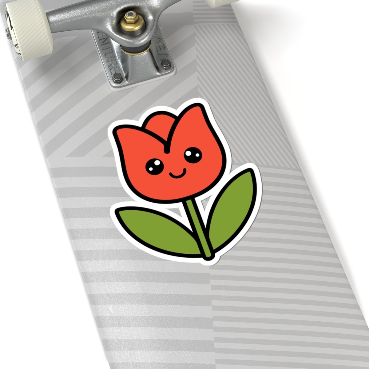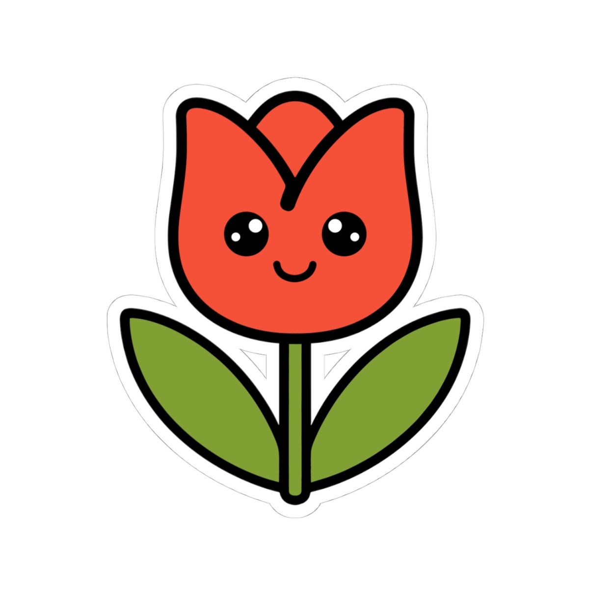 Design appeal: Features a kawaii-style tulip with delicate petals, a bright green stem and leaves, big sparkling eyes, and a sweet little smile, radiating pure springtime joy and natural charm.