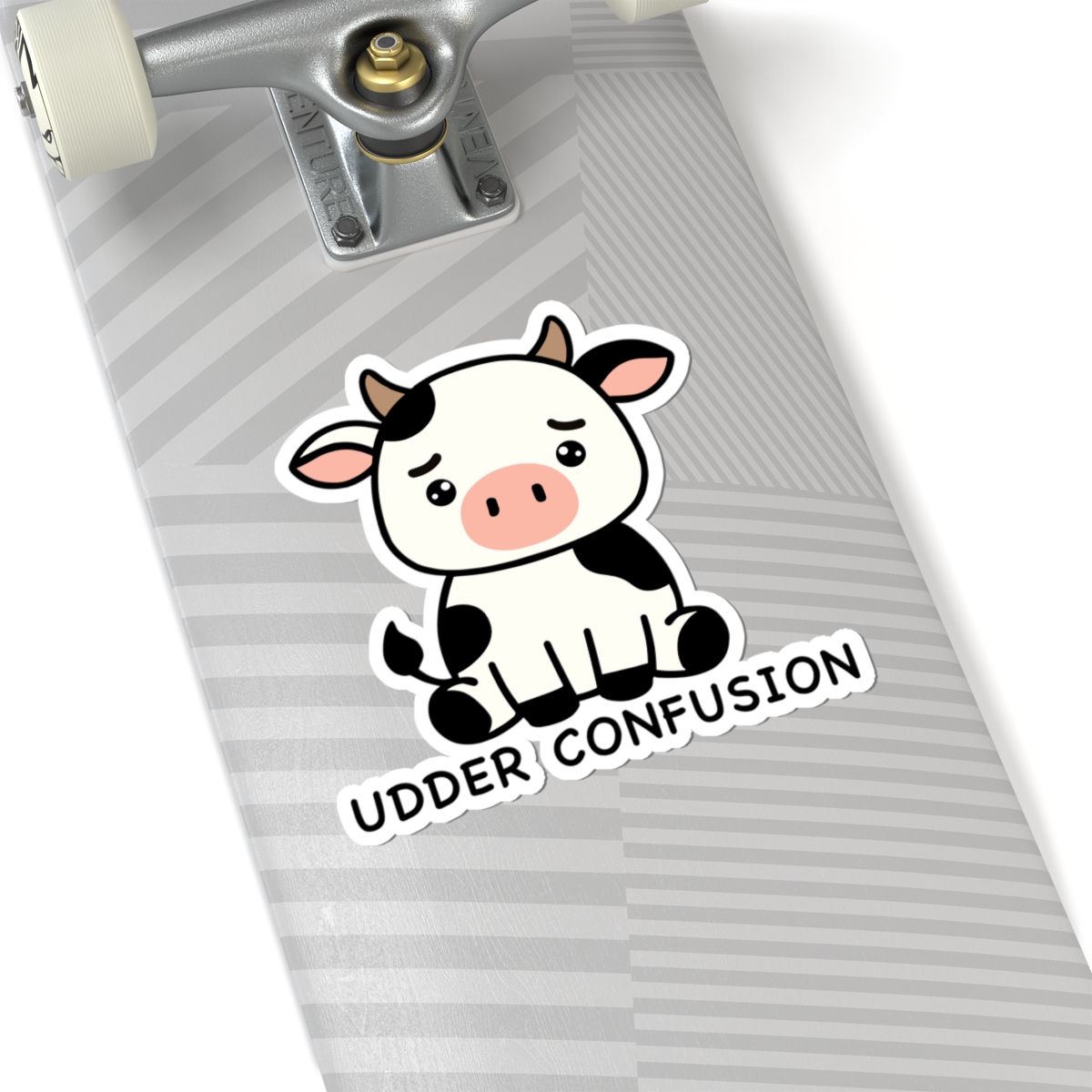 Dazed and dairy-licious – Features a kawaii-style cow with wide eyes—complete with spotted fur.