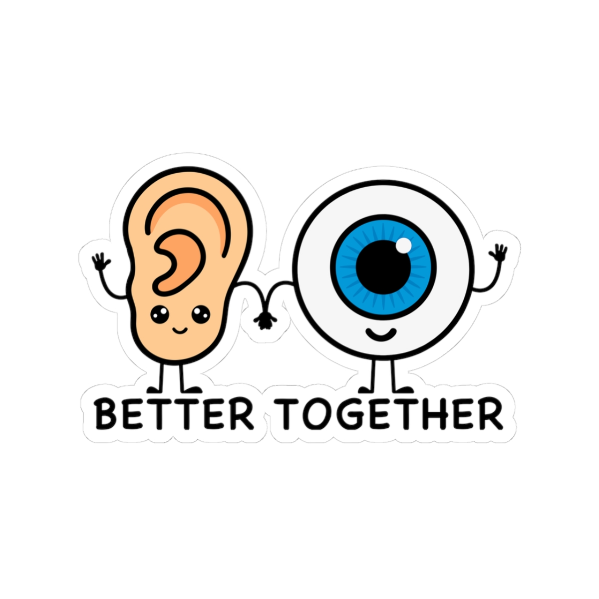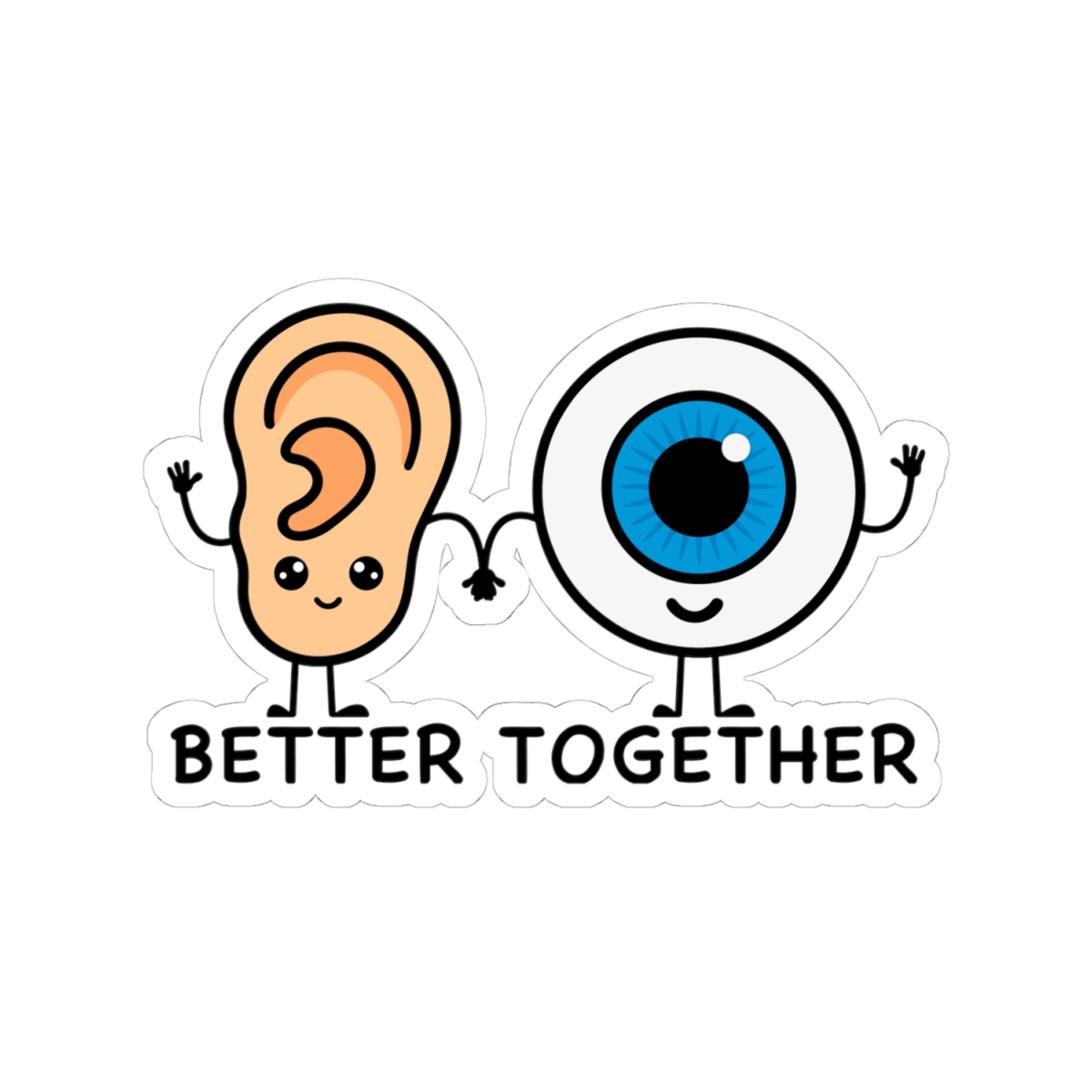 Showcase the powerful partnership of sight and sound with our “Vision & Hearing — Better Together” Sticker! Featuring a heartwarming design of an eyeball and an ear holding hands, this playful duo brings a touch of unity and care to laptops, journals, planners, or indoor water bottles.