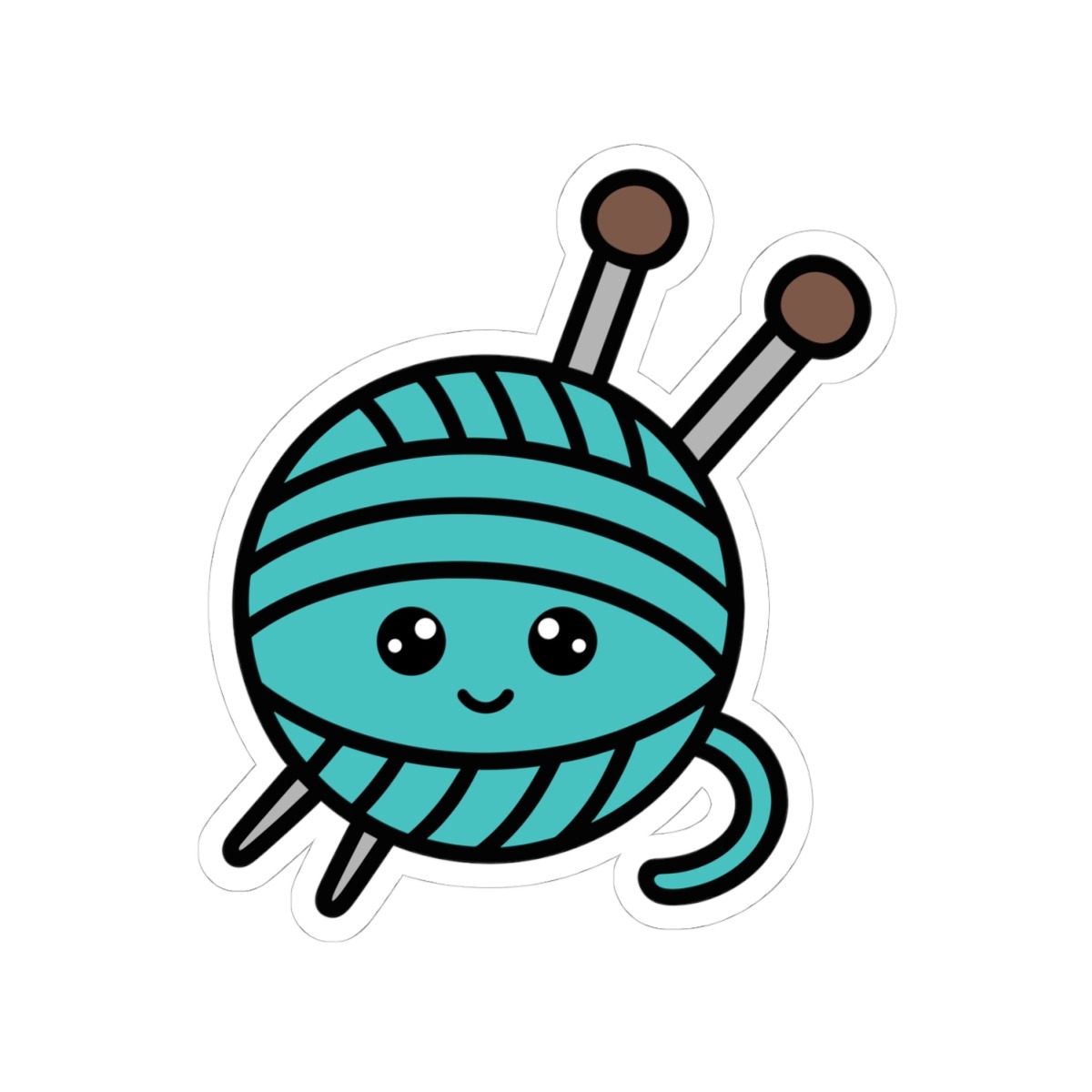 Threaded with charm – Features a kawaii-style ball of yarn with two crochet needles, and a cheerful expression that says “let’s make something cute.”